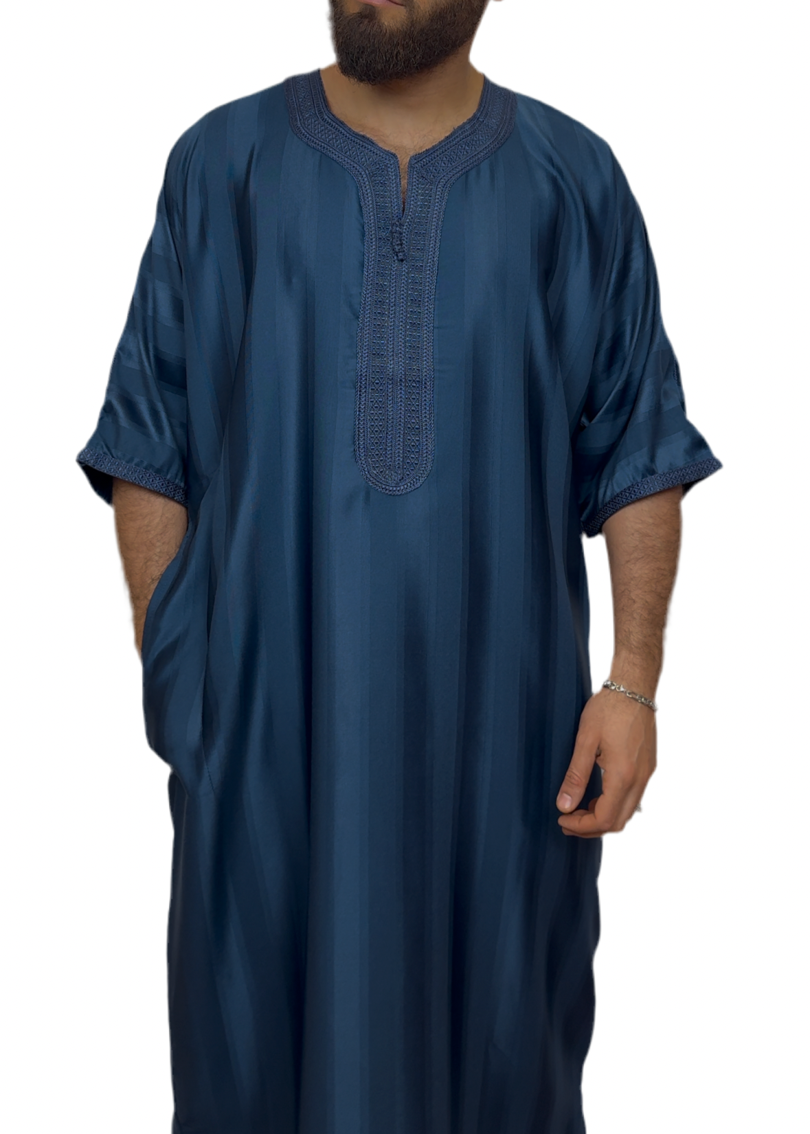 Unser marokkanischer Qamis vereint traditionelle Eleganz mit modernem Tragekomfort. Gefertigt aus hochwertigem und atmungsaktivem Material, bietet er eine angenehme Passform für jede Gelegenheit – sei es für das Gebet, besondere Anlässe oder den Alltag.
