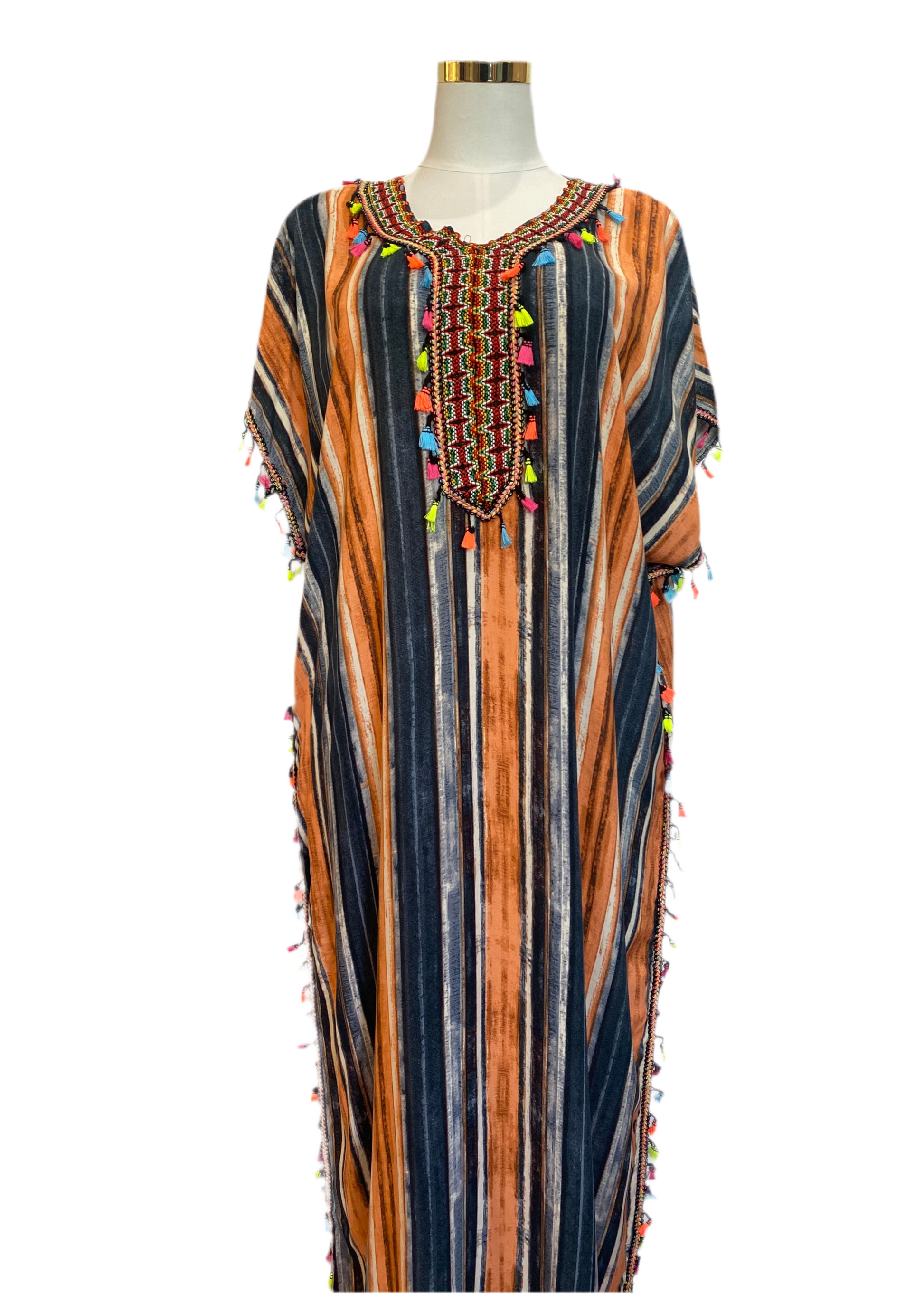 Marokkanische Gandoura Gestreift Schwarz