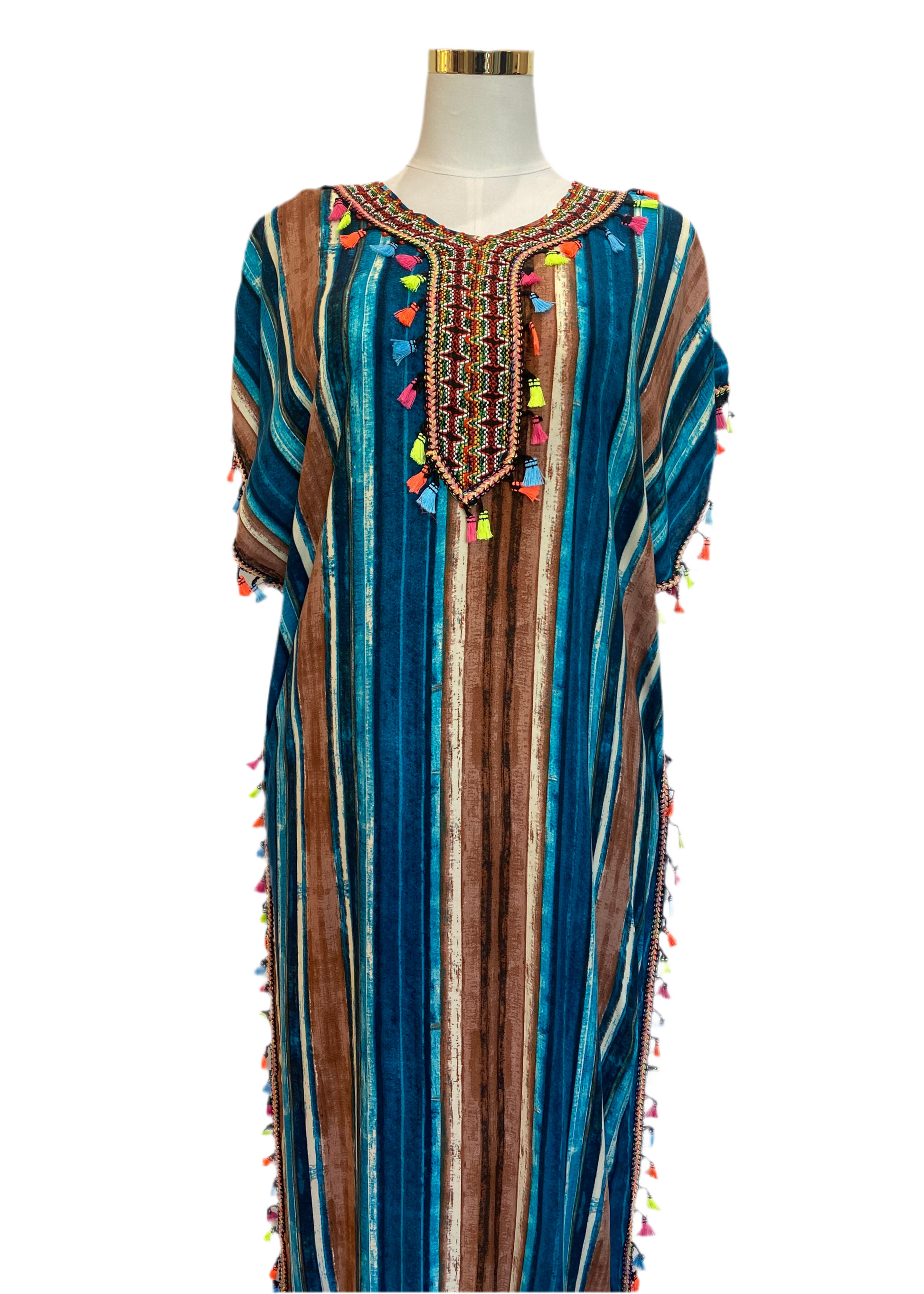 Marokkanische Gandoura Gestreift Türkis