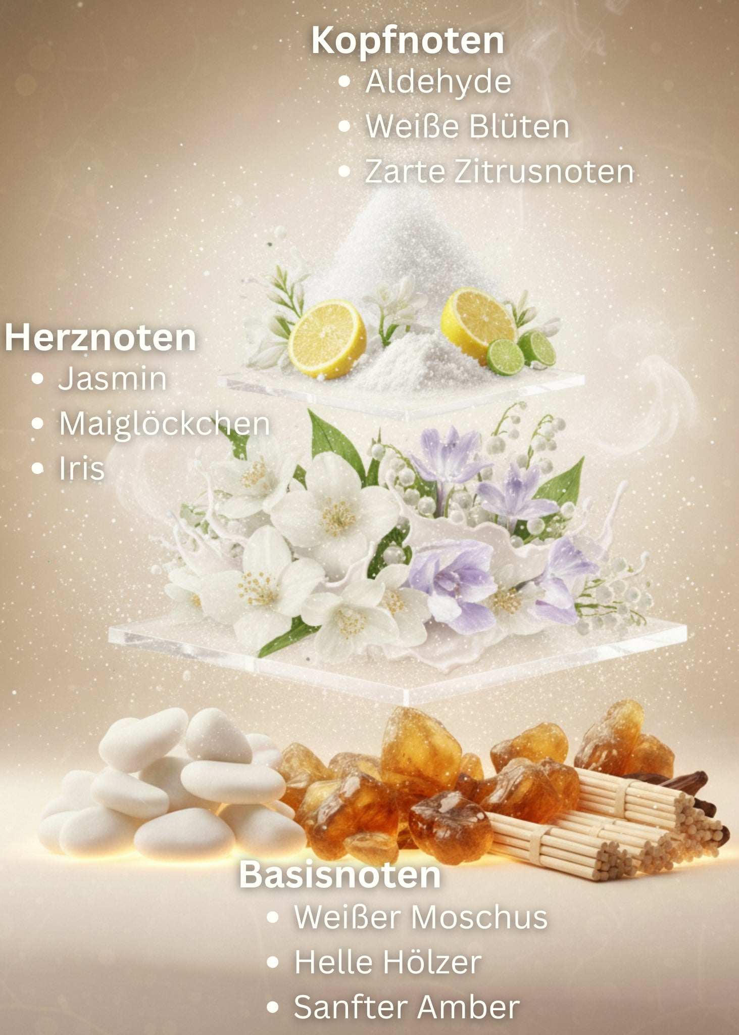 Kopfnote: Aldehyde, weiße Blüten, zarte Zitrusnoten